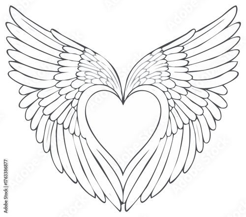 Obraz premium Symmetrical Angel Wings Forming a Heart Shape Line Drawing Illustration
