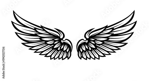 © Chanal, Obraz premium symmetrical black and white line drawing of pointed wings