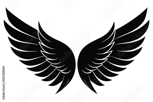 © Jannatul, Fototapeta premium Symmetrical Black Angel Wings Illustration Design Element on White Background