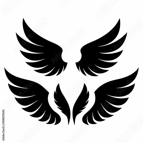 © MD REZAUL, Obraz premium 6 Symmetrical Black Wing Silhouette Vector Illustrations Set