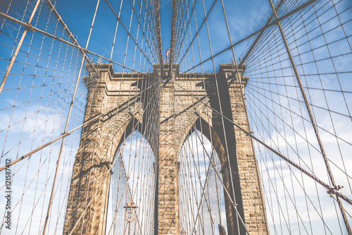 Fototapeta premium symmetrical cable lines at brooklyn bridge