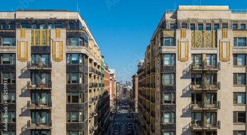 © DanadyaksaDen, Fototapeta premium Symmetrical City Buildings with Geometric Facades
