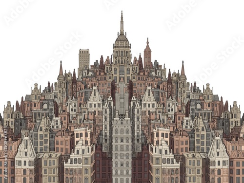 Fototapeta premium Symmetrical City Skyline Reflection with Vintage Architecture in Abstract...