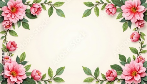 Fototapeta premium Symmetrical floral motifs arranged in squares, pastel tones , flowers, leaf, elegant
