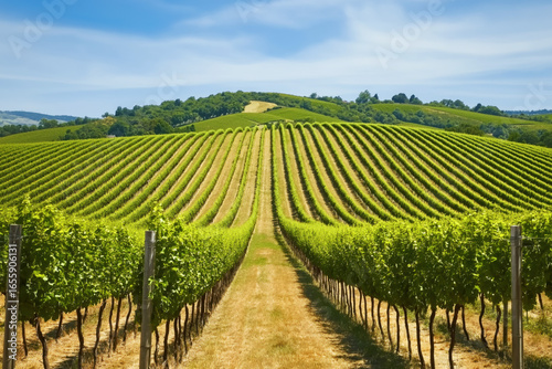 Fototapeta premium Symmetrical Green Vineyard on Rolling Hills