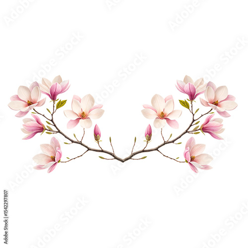 © Png Stock, Obraz premium Symmetrical Pink Magnolia Blossom Arrangement on Black Background