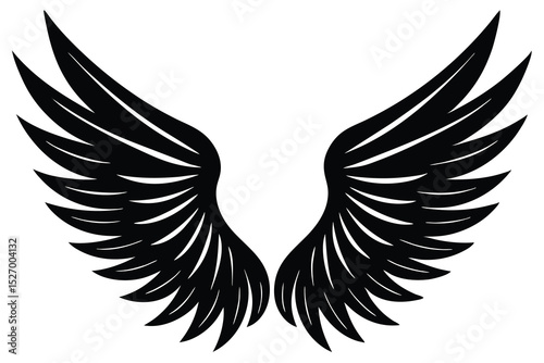 Obraz premium Symmetrical Silhouette of Two Spreading Black Wings with Defined Feathers on White Background