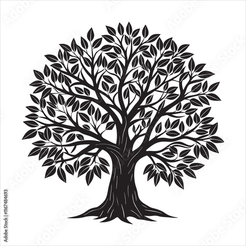 © Suman, Fototapeta premium Symmetrical Tree with Broad Canopy Vector Illustration in Black and White
