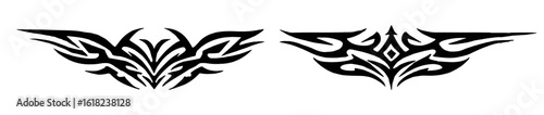 Obraz premium Symmetrical tribal tattoo design with sharp angular lines and leaf-like forms...