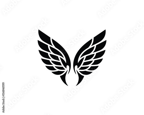 Obraz premium Symmetrical Tribal Wings Vector – Black and White Stylized Feather Design