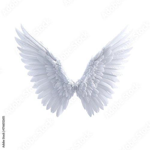 © Gayung, Fototapeta premium Symmetrical white angel wings on a dark background