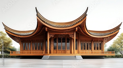 © Risha, Fototapeta premium Symmetrical wooden building in classical Chinese style high resolution picture
