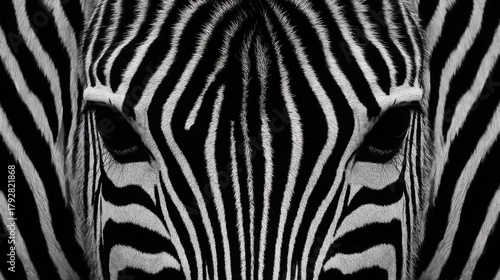 Fototapeta premium Symmetrical zebra skin pattern, crisp black and white stripes, flat and...