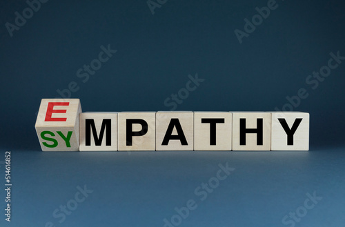 Obraz premium Sympathy or Empathy. Cubes form the words Sympathy or Empathy.