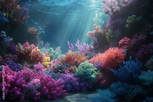 Naklejka premium Symphonic Corals: An Animated Underwater Ballet of Corals and Marine Life in...