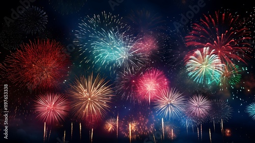Naklejka premium Symphony of Lights: A breathtaking spectacle of colorful fireworks...