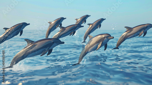 © Digital_Dreamer, Obraz premium Synchronized Symphony: Dolphins Leaping in Harmony