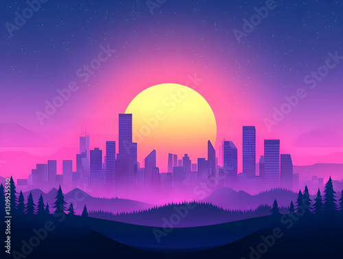 © Zamans, Fototapeta premium Synthwave Cityscape Illustration