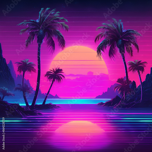 © Ezra, Fototapeta premium Synthwave horizon