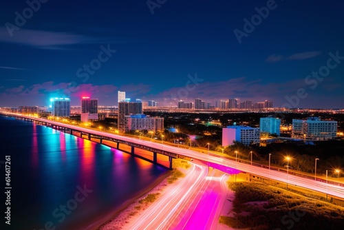Fototapeta premium Synthwave inspired highway and city. Generated AI