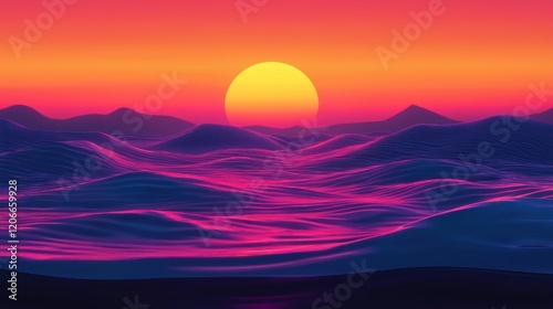 Fototapeta premium Synthwave Sunset Over Undulating Hills