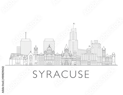 © NAK, Naklejka premium Syracuse New York cityscape illustration skyline drawing