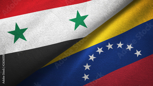 © Aleks Taurus, Fototapeta premium Syria and Venezuela two flags textile cloth, fabric texture