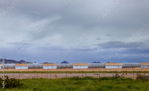Obraz premium Systems for heating water from sunlight sun collectors on thermo electric station