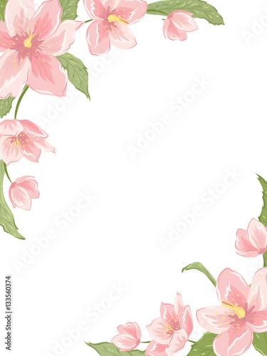 Naklejka premium Szablon ramki rogu z ciemiernika Sakura magnolia kwiaty na białym tle....