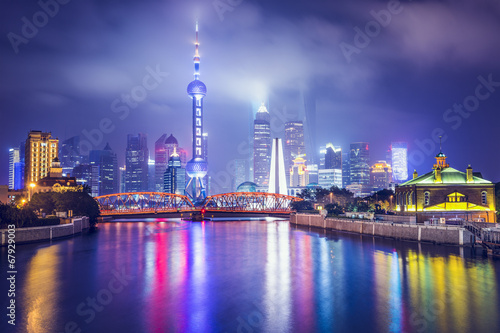 © SeanPavonePhoto, Obraz premium Szanghaj, Chiny nocą