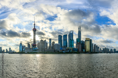 © ABCDstock, Fototapeta premium Szanghaj panoramę i pochmurne niebo krajobraz, Chiny.