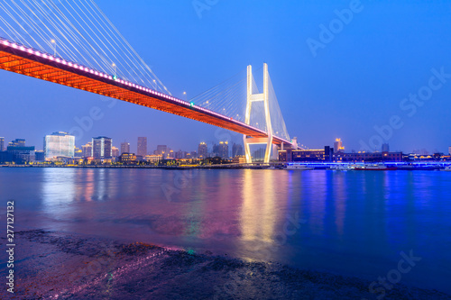 Naklejka premium Szanghajski most Nanpu i scena nad rzeką Huangpu nocą, Chiny
