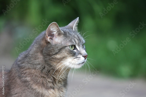 Fototapeta premium Szary, bardzo uroczy kot wpatrujący się w jakiś punkt poza kadr