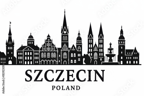 Naklejka premium Szczecin. Poland Panorama.black and white logo illustration