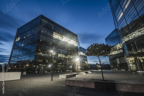 © Mike Mareen, Fototapeta premium Szczecin, Polska-maj 2017: Nowoczesny biurowiec wieczorem