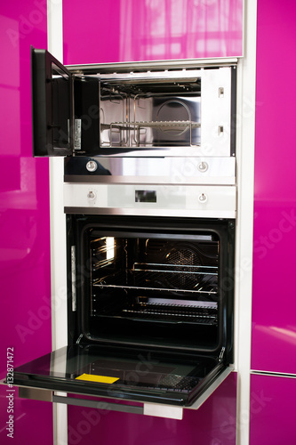 Obraz premium Szczegół nowoczesnej kuchni różowej.