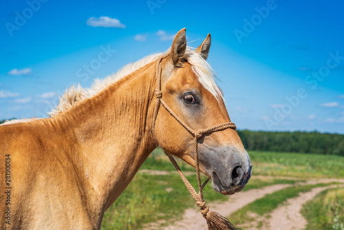 © shymar27, Obraz premium Szczegół portret wsi źrebię z niewyraźne tło.