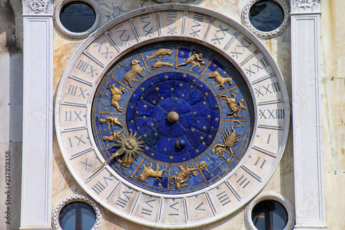 Fototapeta premium Szczegóły wieży zegarowej na Piazza di San Marco w Wenecji, Włochy.