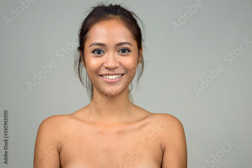 © Ranta Images, Obraz premium Szczęśliwa młoda piękna kobieta Azji bez koszuli jako koncepcja zdrowia i urody