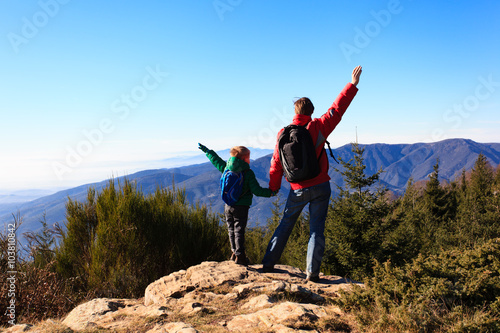 © nadezhda1906, Obraz premium szczęśliwa rodzina piesze wycieczki w malownicze góry
