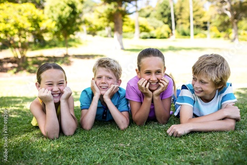 Fototapeta premium Szczęśliwe dzieci, leżąc na trawie