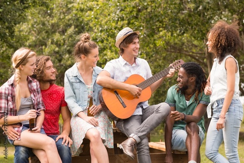 © WavebreakmediaMicro, Obraz premium Szczęśliwi przyjaciele w parku