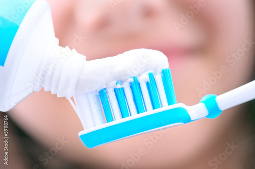 © Rasulov, Naklejka premium szczotkowanie zębów