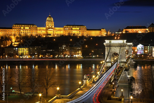 © Andrey Shevchenko, Fototapeta premium Szechenyi Chain Bridge and Royal Palace in Budapest. Hungary