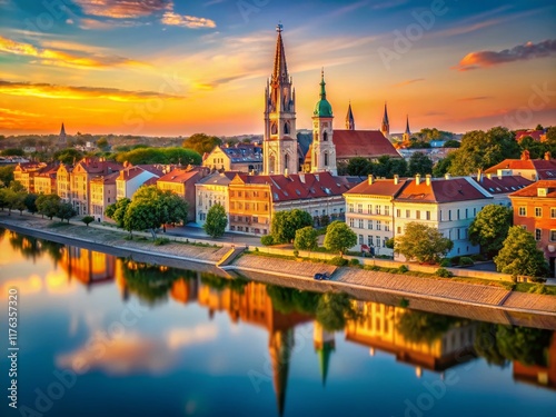 © Danicha, Obraz premium Szeged Hungary Cityscape: High-Resolution Panoramic View of the City's Architecture and River Tisza