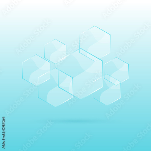 Fototapeta premium Sześciokąt przezroczyste elementy na niebieskim tle