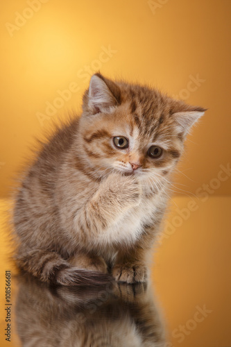 Obraz premium Szkocki kotek, portret kociak na tle studio kolor