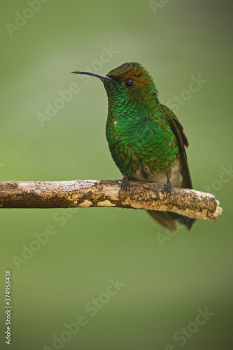 © PetrDolejsek, Obraz premium Szmaragd z miedzianą głową przysiadł na gałęzi