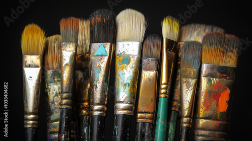 Naklejka premium Sztuka malarska wykonana pędzlem, pełna kreatywności i rzemiosła, stanowi tło...