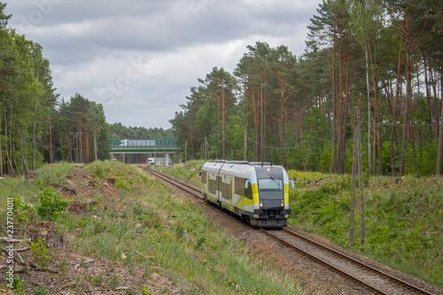 © Erap2, Naklejka premium Szynobus pędzi chwilę po wyjeździe z miasteczka